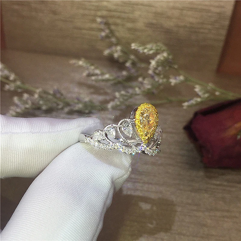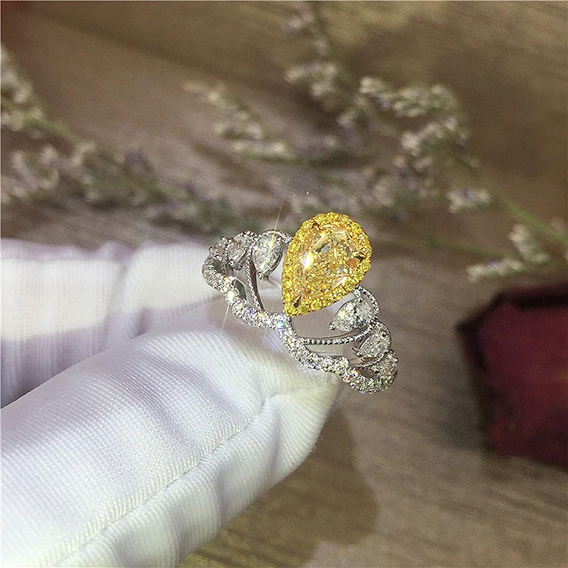 Best Seller Centre 1ct Pear Yellow Moissanite Tourmaline Ring Side Small Pear Ring Solid 18K White Gold 1ctw Fi