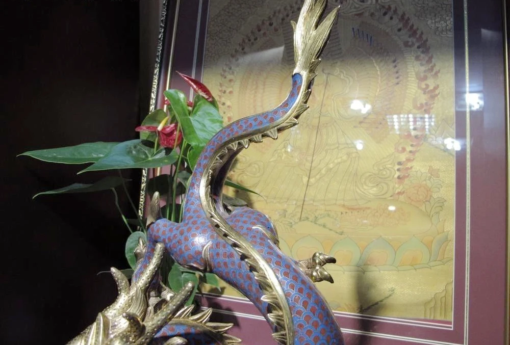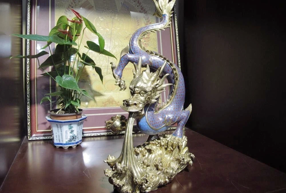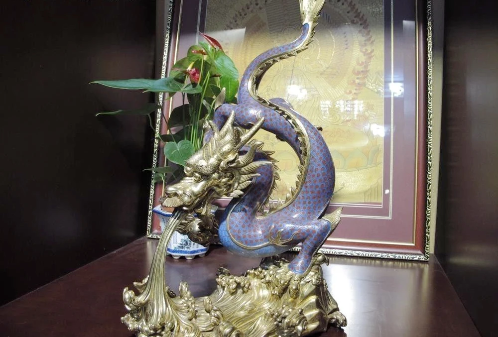 Best Seller Bronze 24K Gold Cloisonne Enamel Propitious Fly Dragon spit water Bead Statue