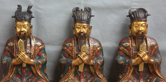 JP S0524 25" Chinese Bronze Gilt Cloisonne Fengshui Sky Earth Water heaven God Set Statue B0403