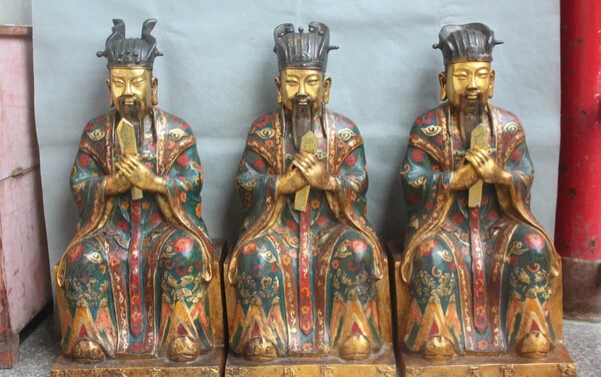 HIGH QUALITY JP S0524 25" Chinese Bronze Gilt Cloisonne Fengshui Sky Earth Water heaven God Set Statue B0403