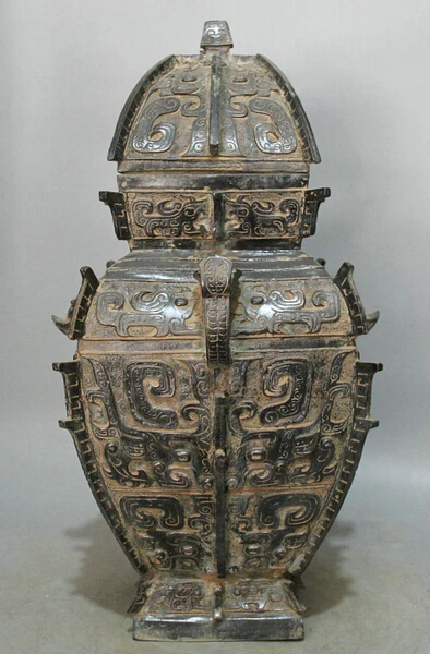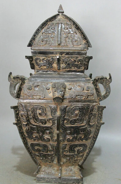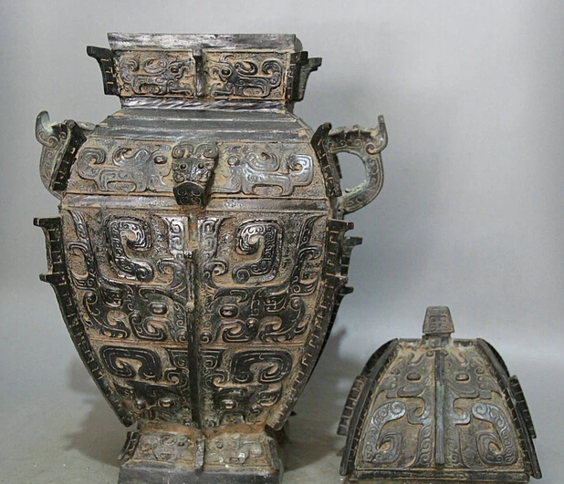 wholesale factory 20" Old Ancient Chinese Bronze Beast handle water food vessel jar pot kettle
