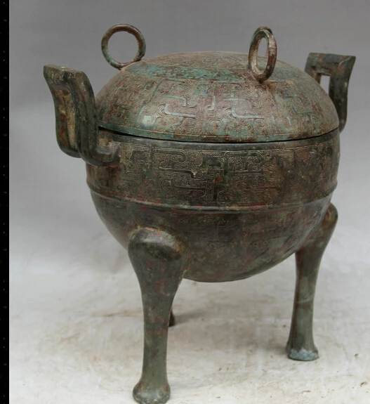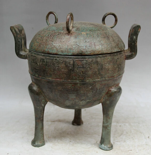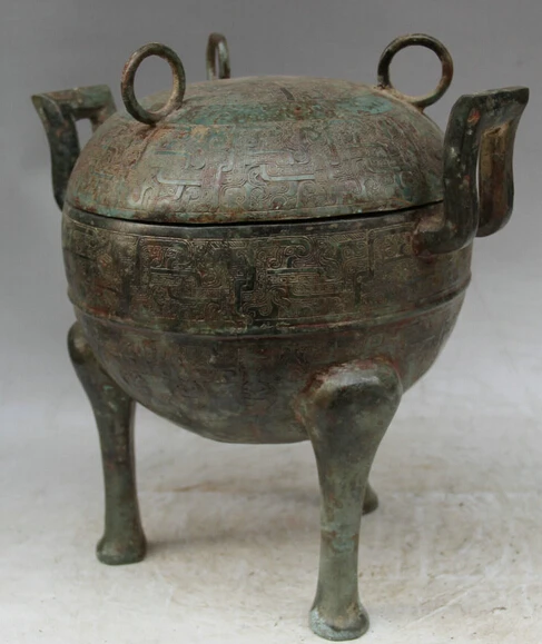 TOP JP S0524 11" Old China dynasty Bronze 3 Foot handle food water Ware vessel Pot Jar Crock