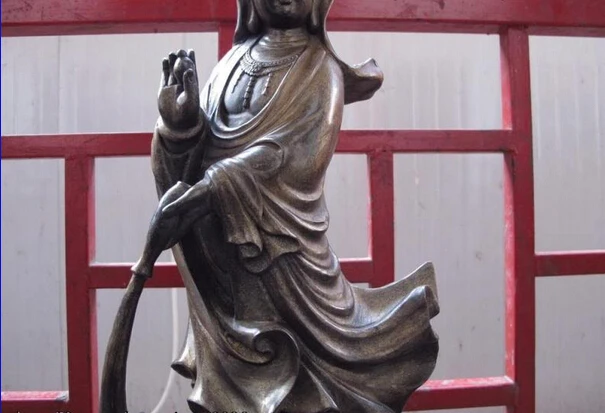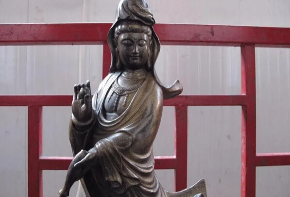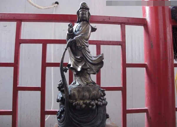 Review S1460 Tibet buddhism bronze copper gild drip water Kwan-yin Bodhisattva buddha Statue D0318