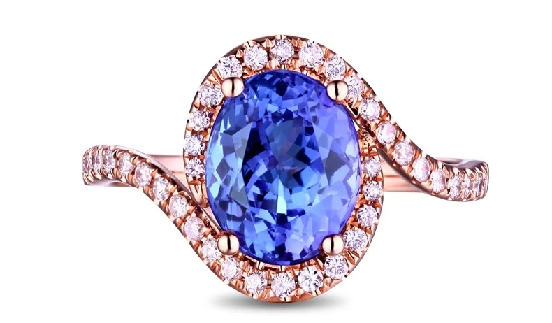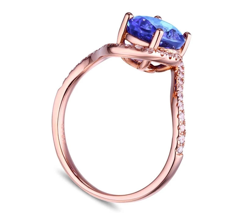BEST CaiMao 18KT/750 Rose Gold 2.12 ct Natural IF Blue Tanzanite AAA 0.29 ct Full Cut Diamond Engagement