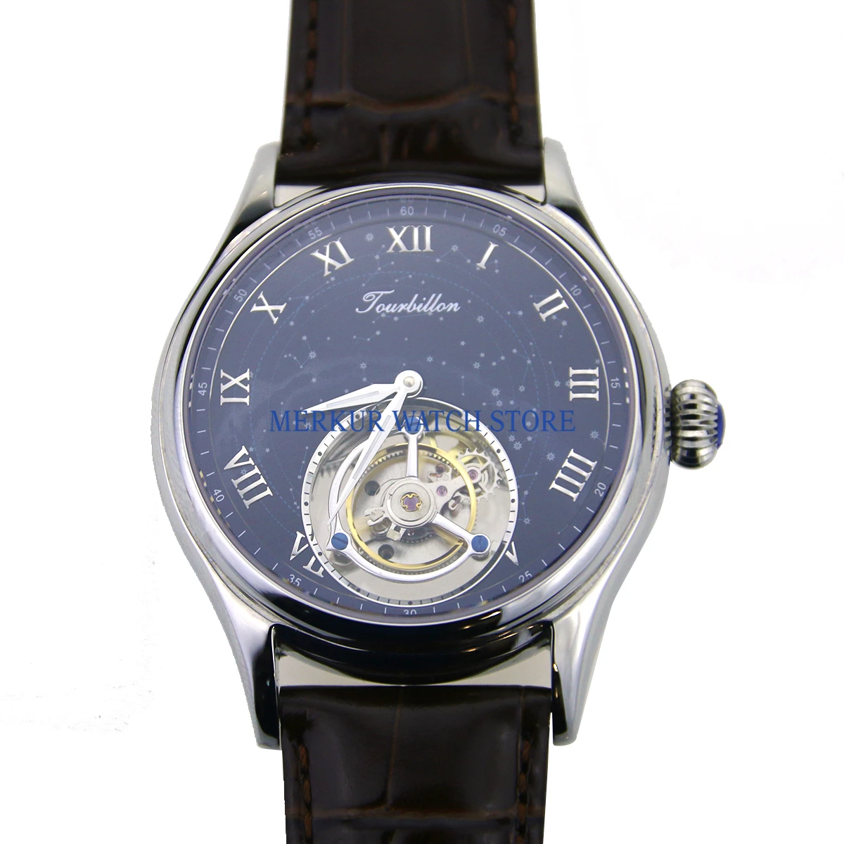 Merkur Mens Watch Mechanical Seagull Hangzhou High Beat Tourbillon Movement Skelenton Luxury Dress