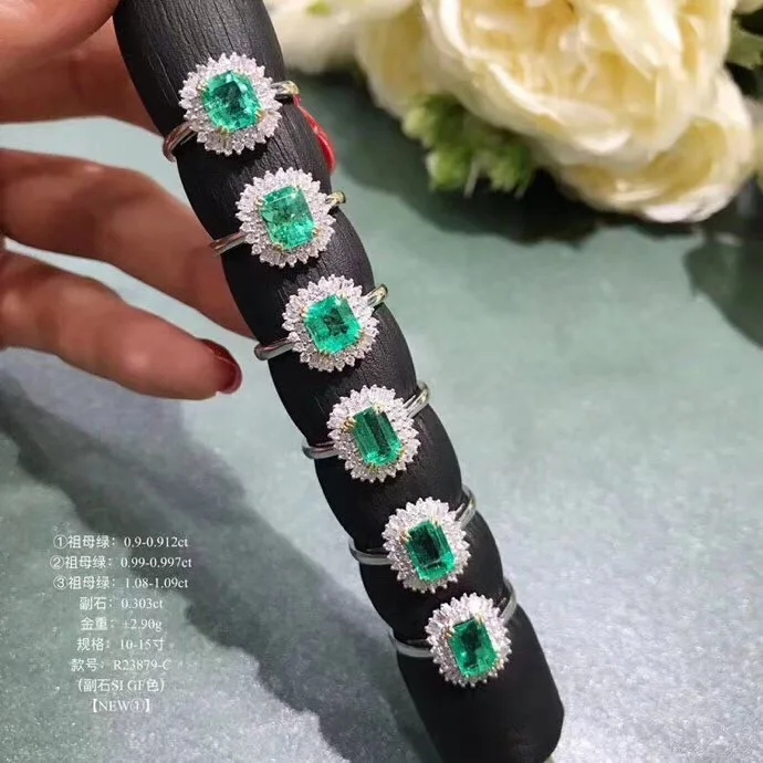 HIGH QUALITY AEAW Jewelry 18K White Gold 0.9ct Natural Emerald Ring Radiant Cut Green Gemstone Double claw Ring