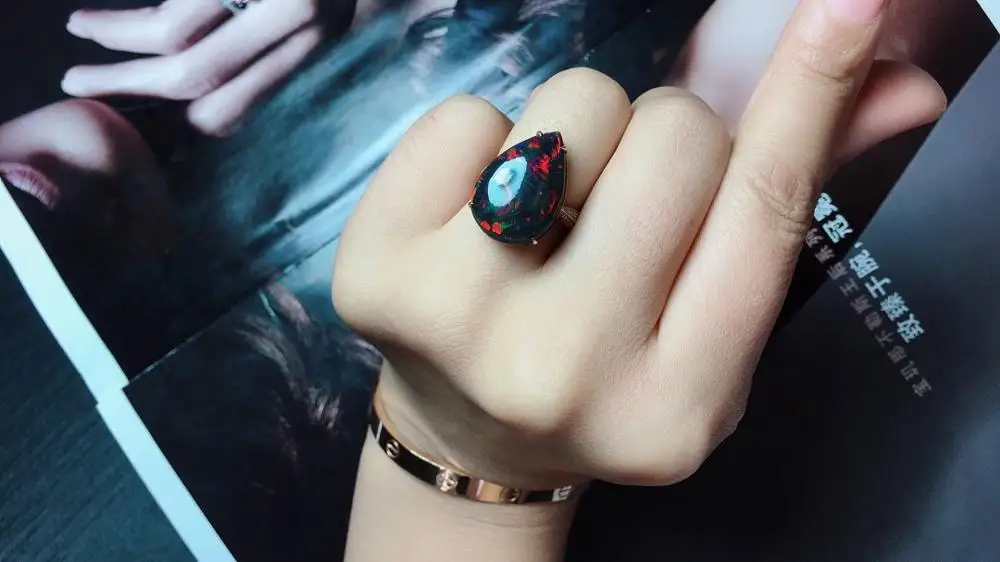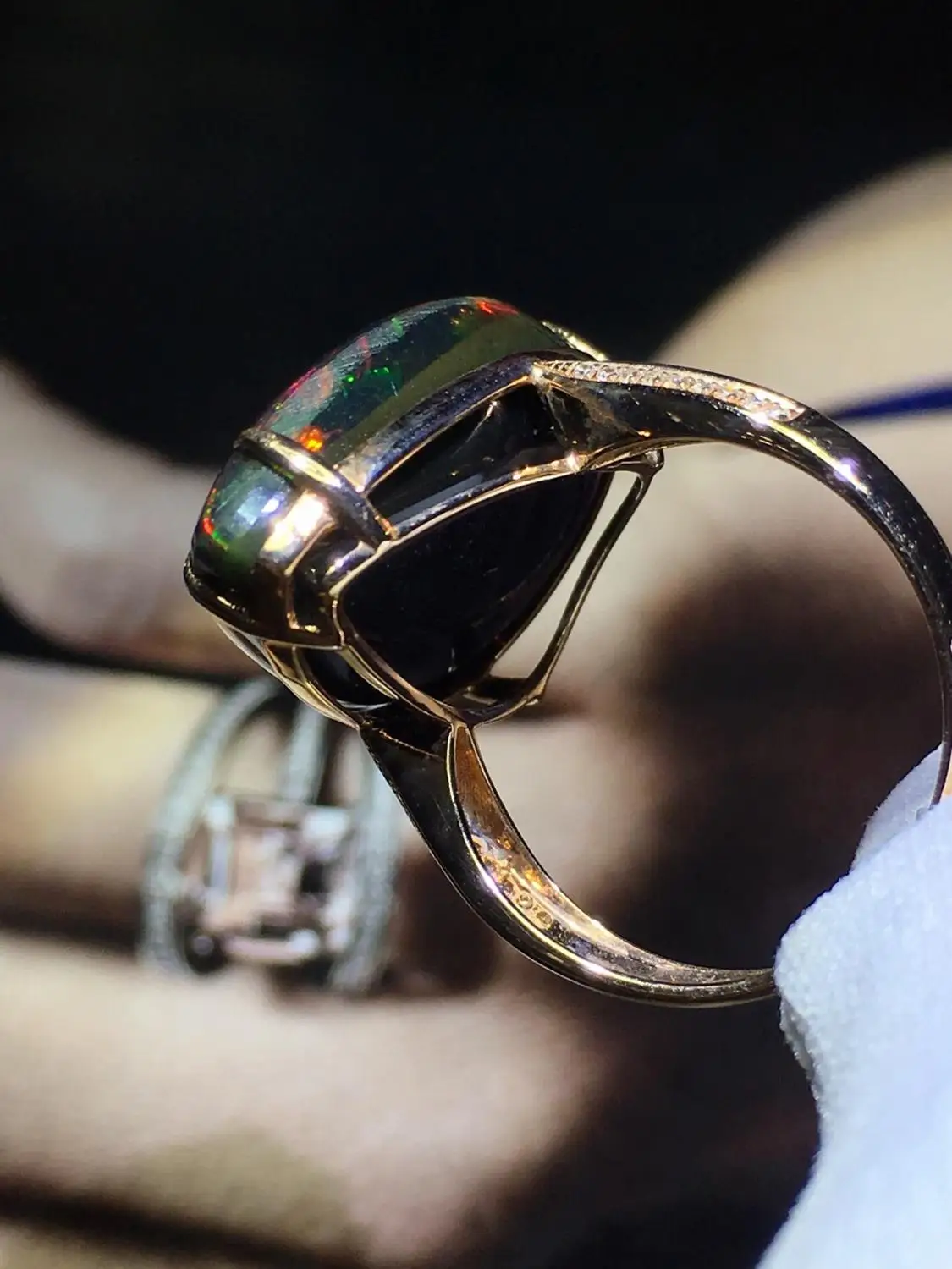 820 Fine Jewelry Pure 18K Rose Gold Natural Precious Opal 11.8ct Gemstone Diamonds Female Fine Ring